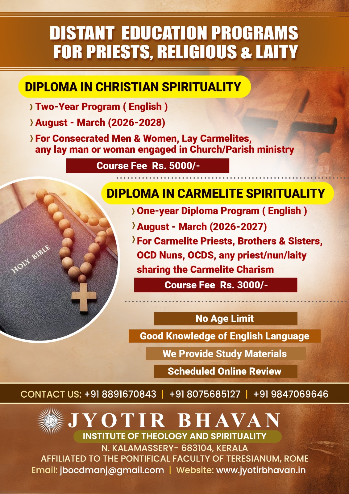 Read moreAdmission Open Two-Year Program; in English; August- March (2026-2028)For Consecrated Men & Women, Lay Carmelites, any lay man or women engaged in Church/Parish ministryFee...
