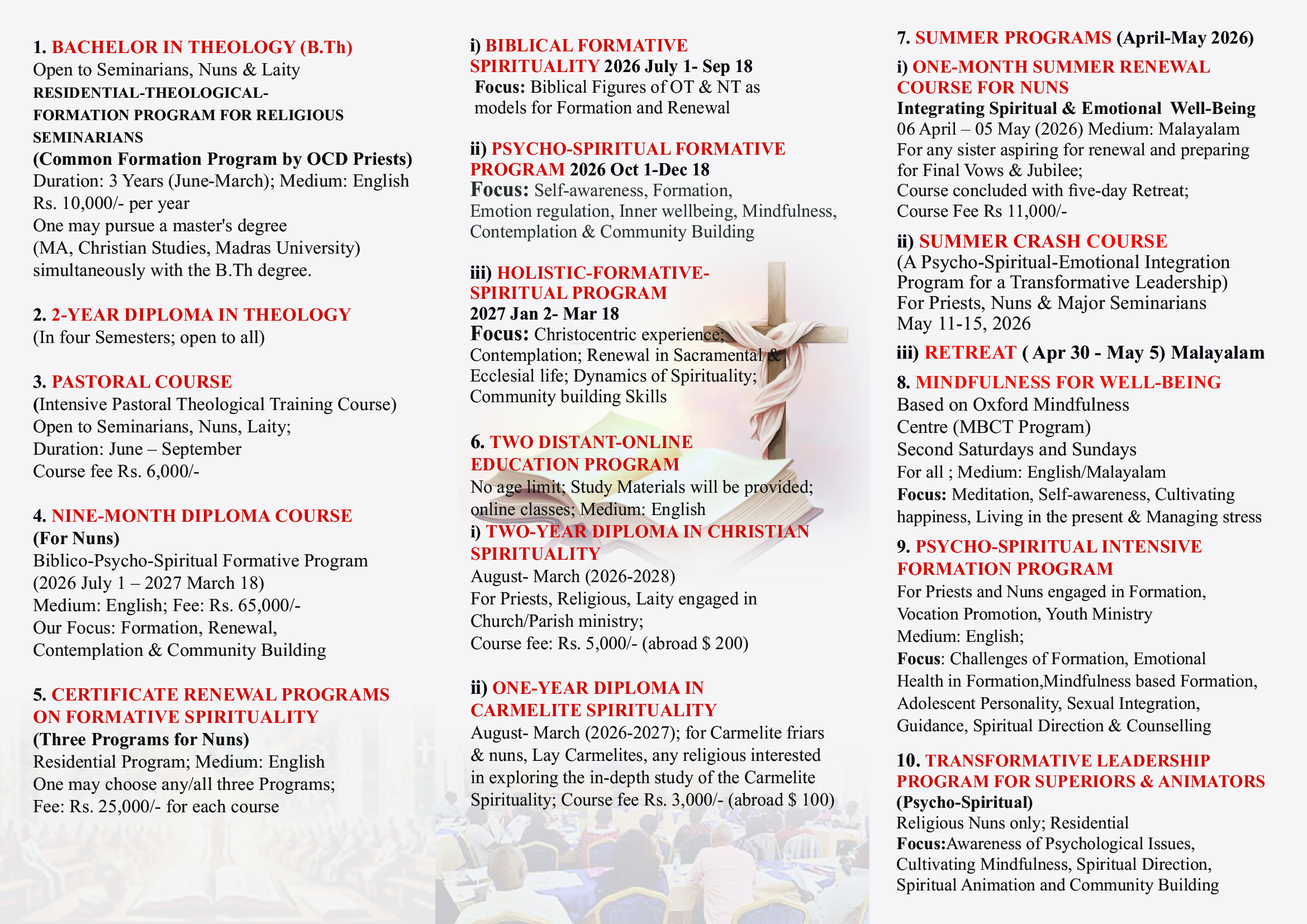 BACHELOR IN THEOLOGY (B.Th)Open to Seminarians, Nuns, Lay Men & WomenDuration: 3 Years (June-March) The Carmelites give Common Formation in Academic & Religious Life for the Semina...