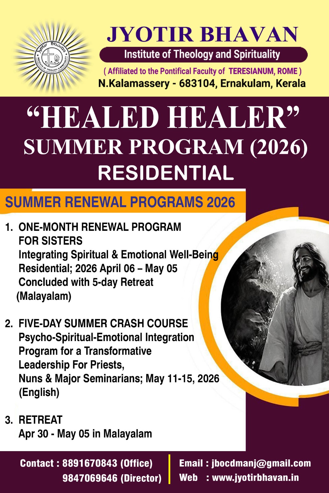 Read moreIntensive Renewal Program for Jubilarians (Consecrated Nuns)2026 April 06 - 05 May A Residential ProgramIn Malayalam Last five days for Retreat ONE-MONTH SUMMER RENEWAL COURSE FOR...